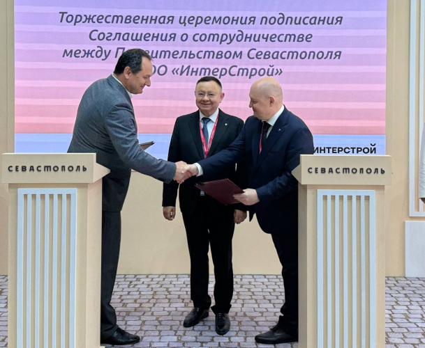 На Петербургском международном экономическом форуме 7 июня Правительство Севастополя и ООО «ИнтерСтрой» подписали соглашение о сотрудничестве. Подписи под документом поставили губернатор Севастополя Михаил Развожаев и генеральный директор ООО «ИнтерСтрой» Олег Леухин.